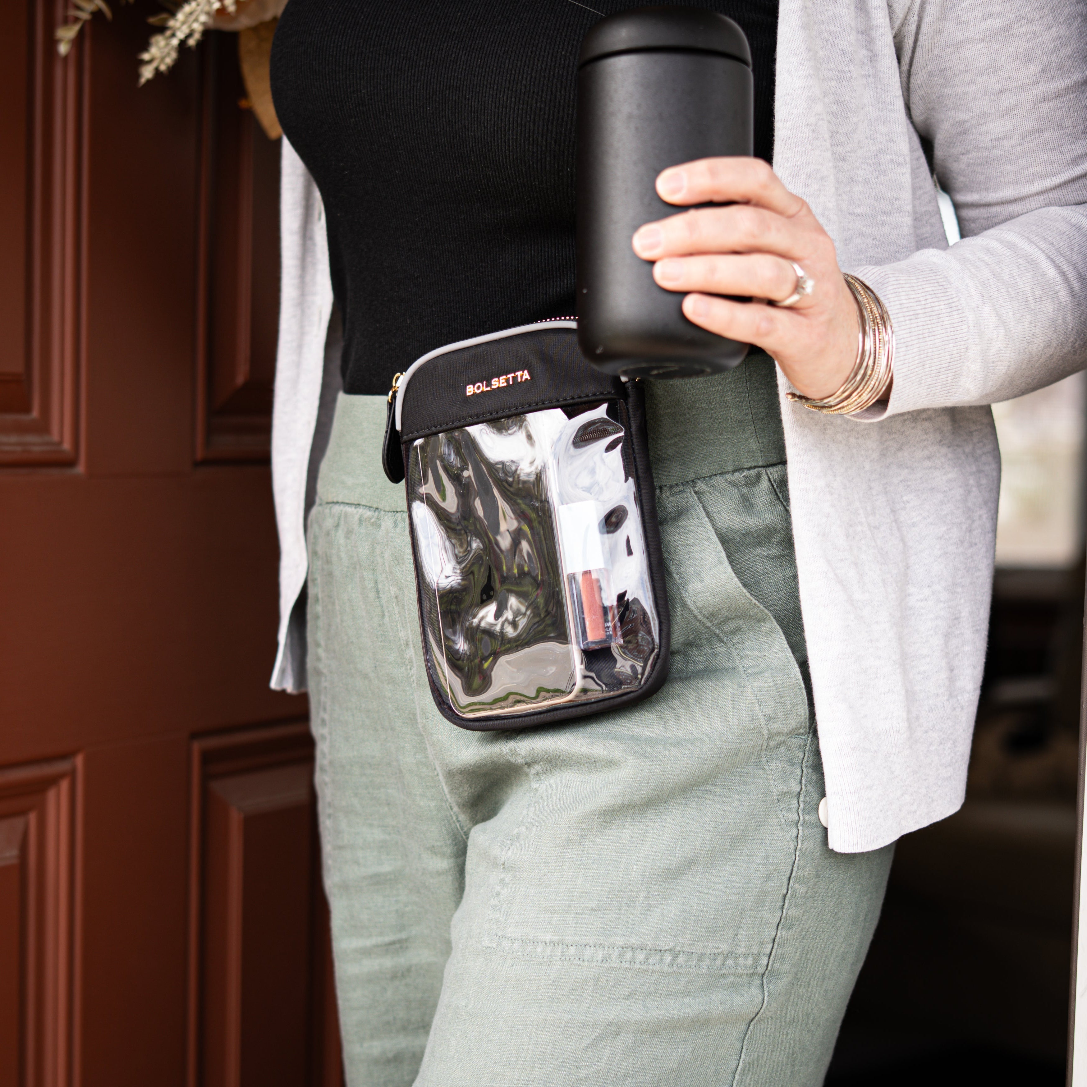 Ready to take on your next event with hands-free ease and event-compliant style? Order the Bolsetta™ Clear-Front Edition today.