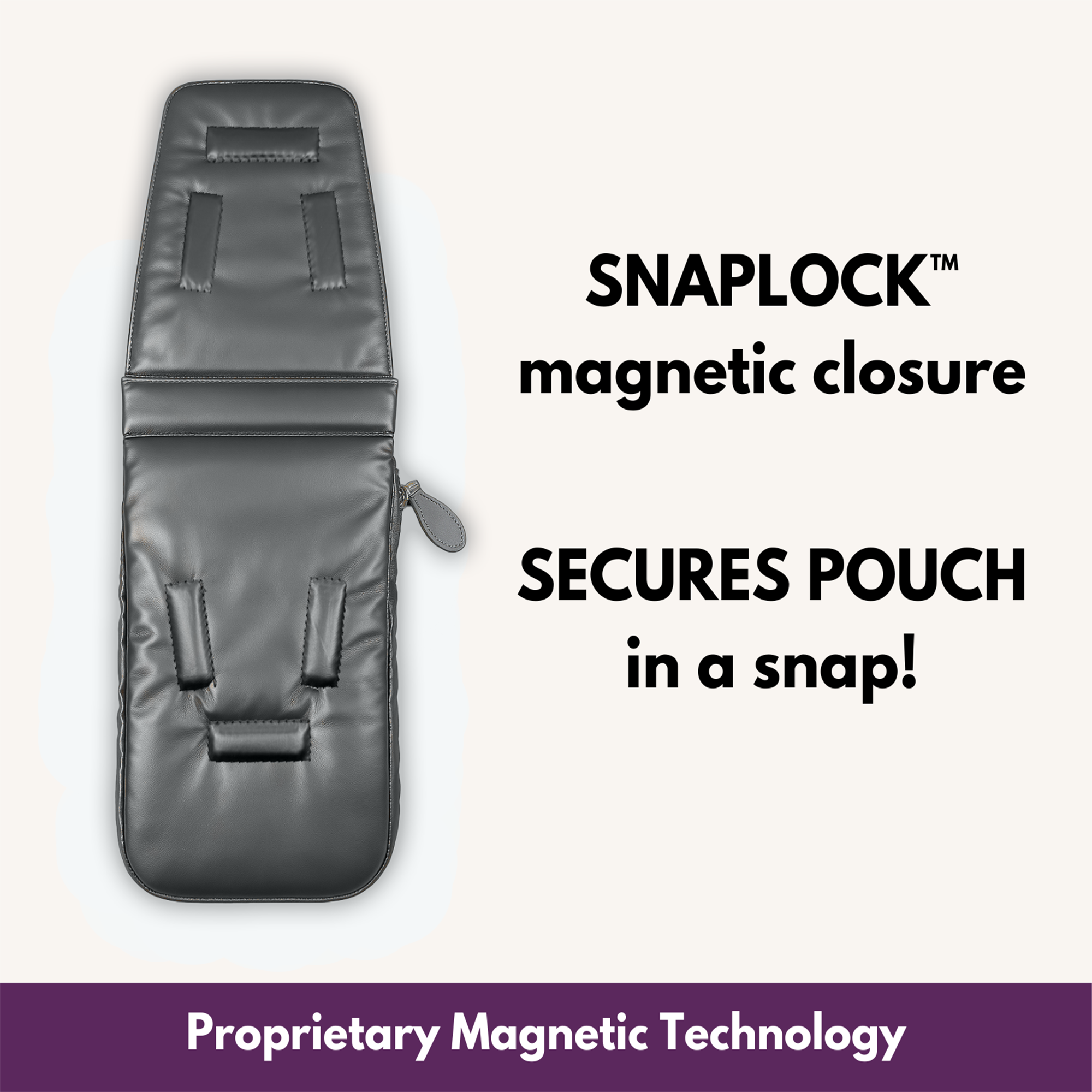 The patented Snaplock™ magnetic system grips your waistband securely — no belt, clip, or strap needed.